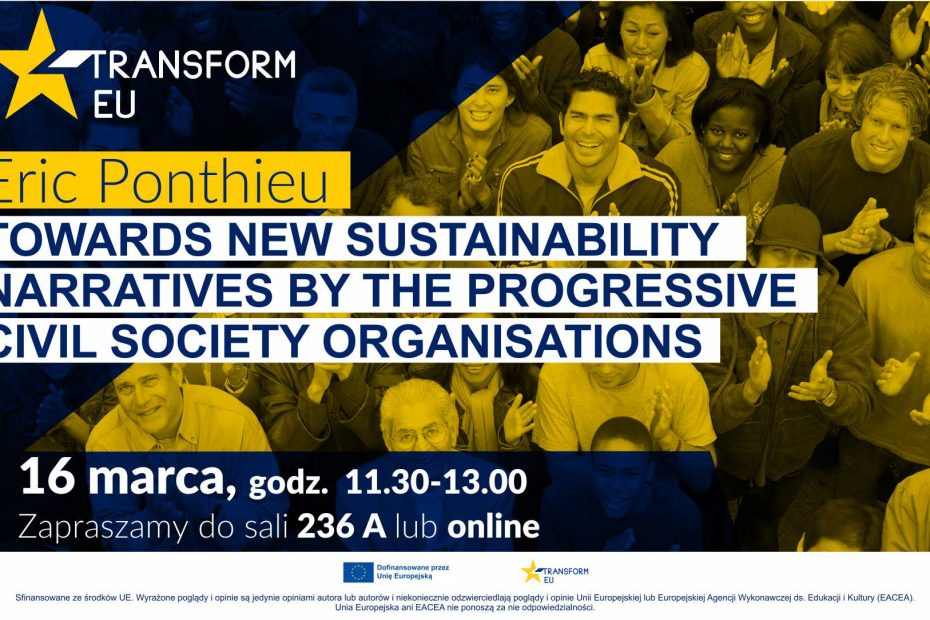 We cordially invite you to the lecture ‘Towards new sustainability narratives by the progressive civil society organisations’, which will be held on March 16, 2026 (11:30–13:00 CET). The event will take place at the Poznań University of Economics and Business,… Read More »Lecture: “Towards new sustainability narratives by the progressive civil society organisations”